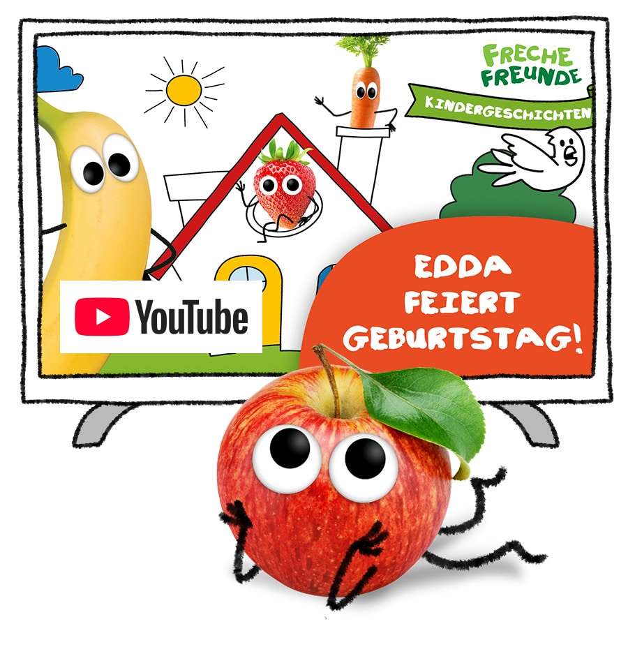 Entdeckt die freche Welt von Edda, Karl & Co. auf unserem Freche Freunde YouTube Kanal! 🎬Dort warten lustige Kindergeschichten, bunte Abenteuer und viele fruchtig-gemüsige Rezepte darauf, entdeckt zu werden, ideal für kleine Obst- und Gemüsefans von 2–8 Jahren.