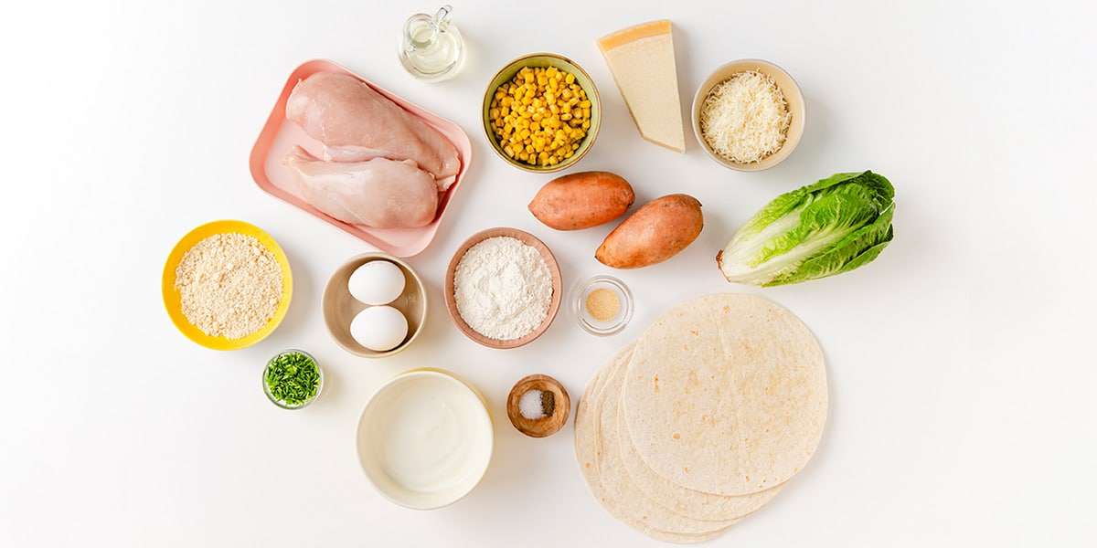 Für unseren Crispy Chicken Wrap mit Süßkartoffel brauchst du folgende Zutaten: