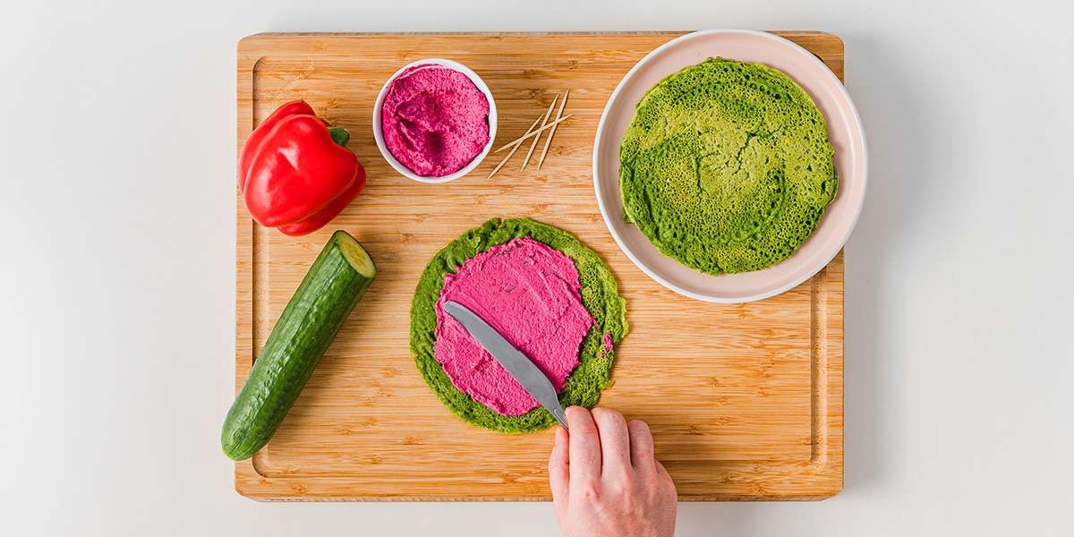 Hier kommt ein buntes Rezept für deine Lunchbox: glutenfreie Pfannkuchen mit Spinat und einem Rote-Bete-Aufstrich (oder Dein Lieblingsaufstrich). Perfekt zum Mitnehmen in der Freche Freunde Brotdose – und richtig lecker für kleine und große Snack-Mäulchen!