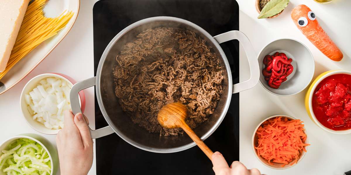 Ganz viel buntes Gemüse, das sich ganz heimlich unter die Soße mischt. Möhren, Tomaten, Sellerie, Zwiebel – und zack, wird aus dem Lieblingsessen eine echte Vitaminkugel! 💥