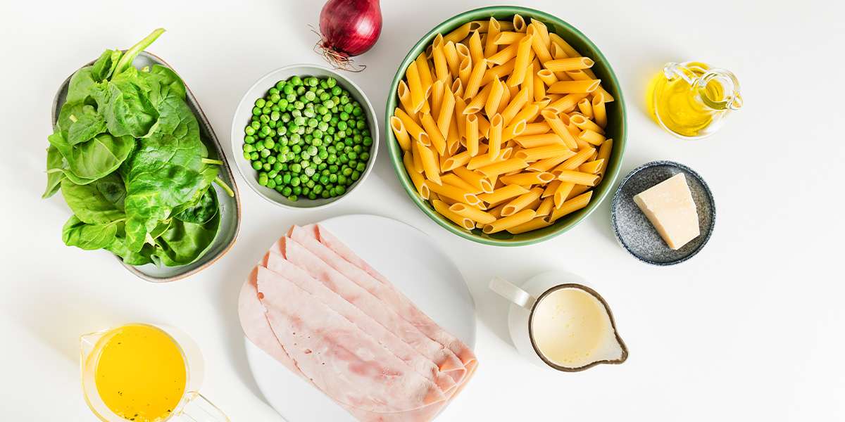 Für unsere One Pot Spinat Pasta mit Schinken brauchst Du nicht viel: