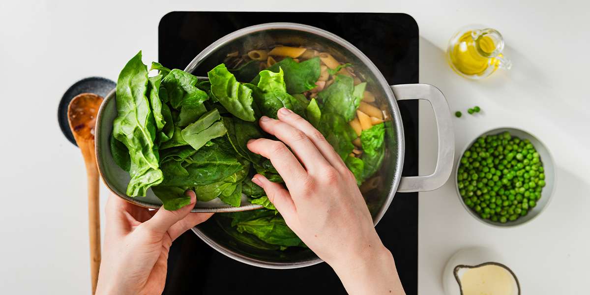 Pasta mit frischen Spinat – und ein bisschen Schinken dazu