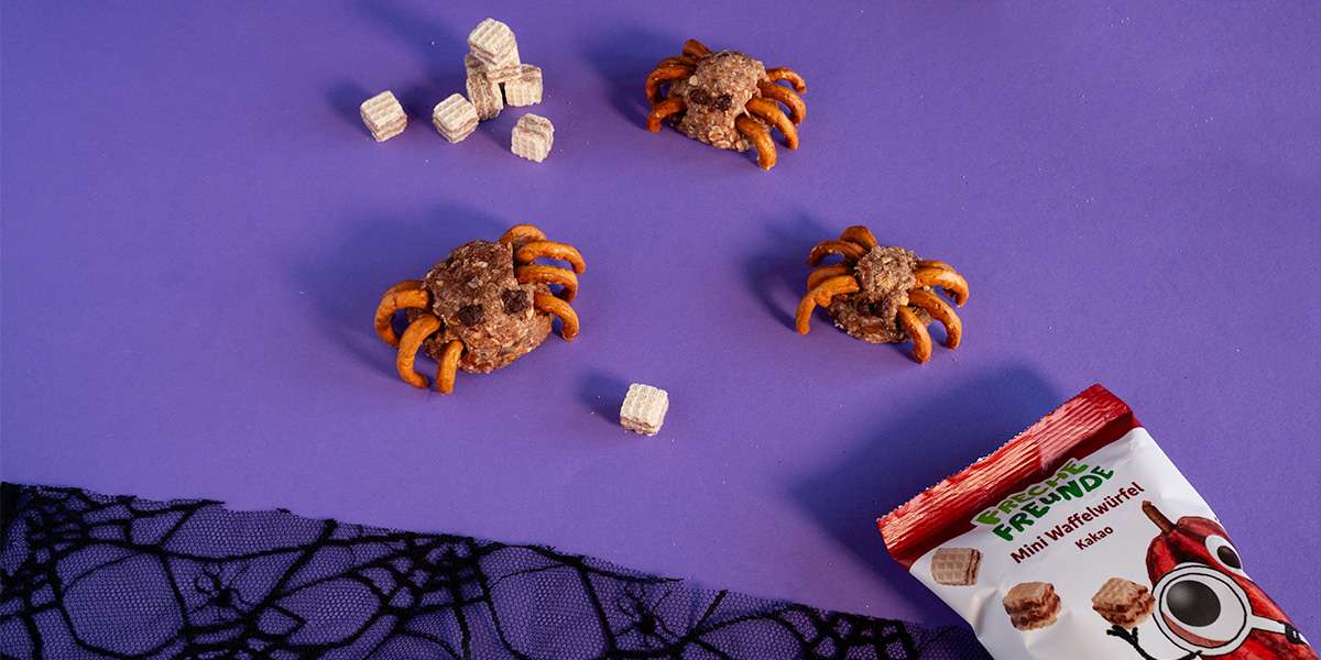 Jetzt wird’s frech-gruselig: Mit unseren Freche Freunde Brezeln zauberst du die Beinchen deiner Spinnen, und mit etwas Kakaocreme entstehen kleine Augen, die dich frech anblinzeln. So werden deine Kugeln im Nu zu gruseligen Spinnen für Kinder zum Essen – das perfekte Fingerfood für Halloween, das auf jeder Halloweenparty für Staunen sorgt!